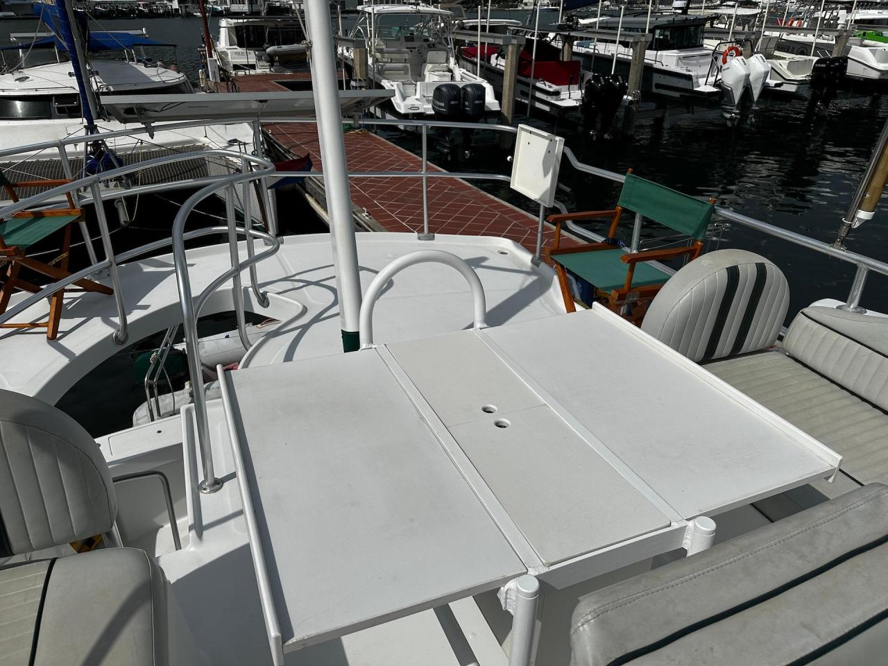SAMSON POST AT BOW FLYBRIDGE WITH COMFORTABLE SEATING FOR 6 TO 8 PERSON