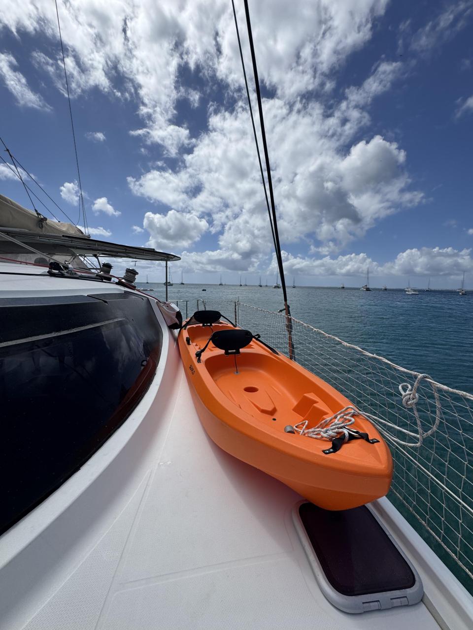 Excellent equipment with watermaker, new dinghy, new cockpit cushions, new Trampoline, and anchor chain. Both engines, standing rig, sails, and batteries have been replaced in 2021.