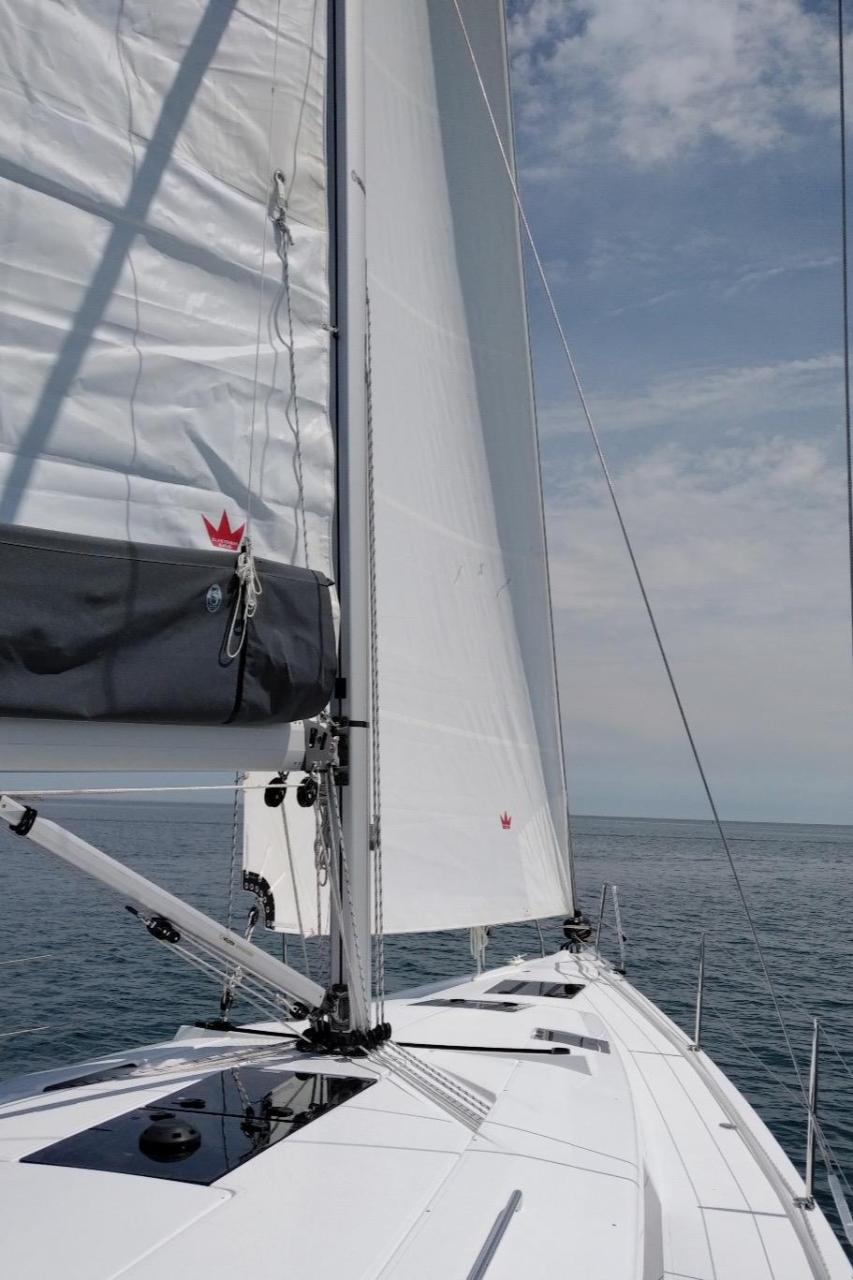 The Hanse 415 is designed for both comfort and adventure on the water. The hull is constructed from durable fiberglass, ensuring a robust and reliable sailing experience. Its sleek design not only captivates the eye but also promises excellent sailing capabilities.