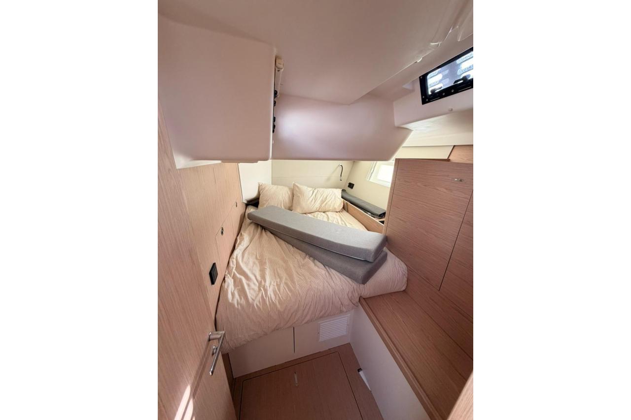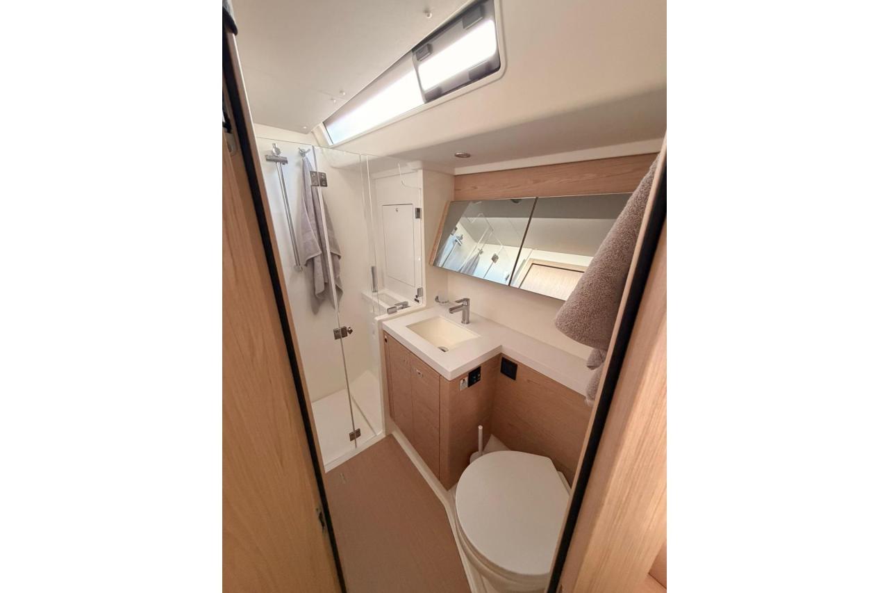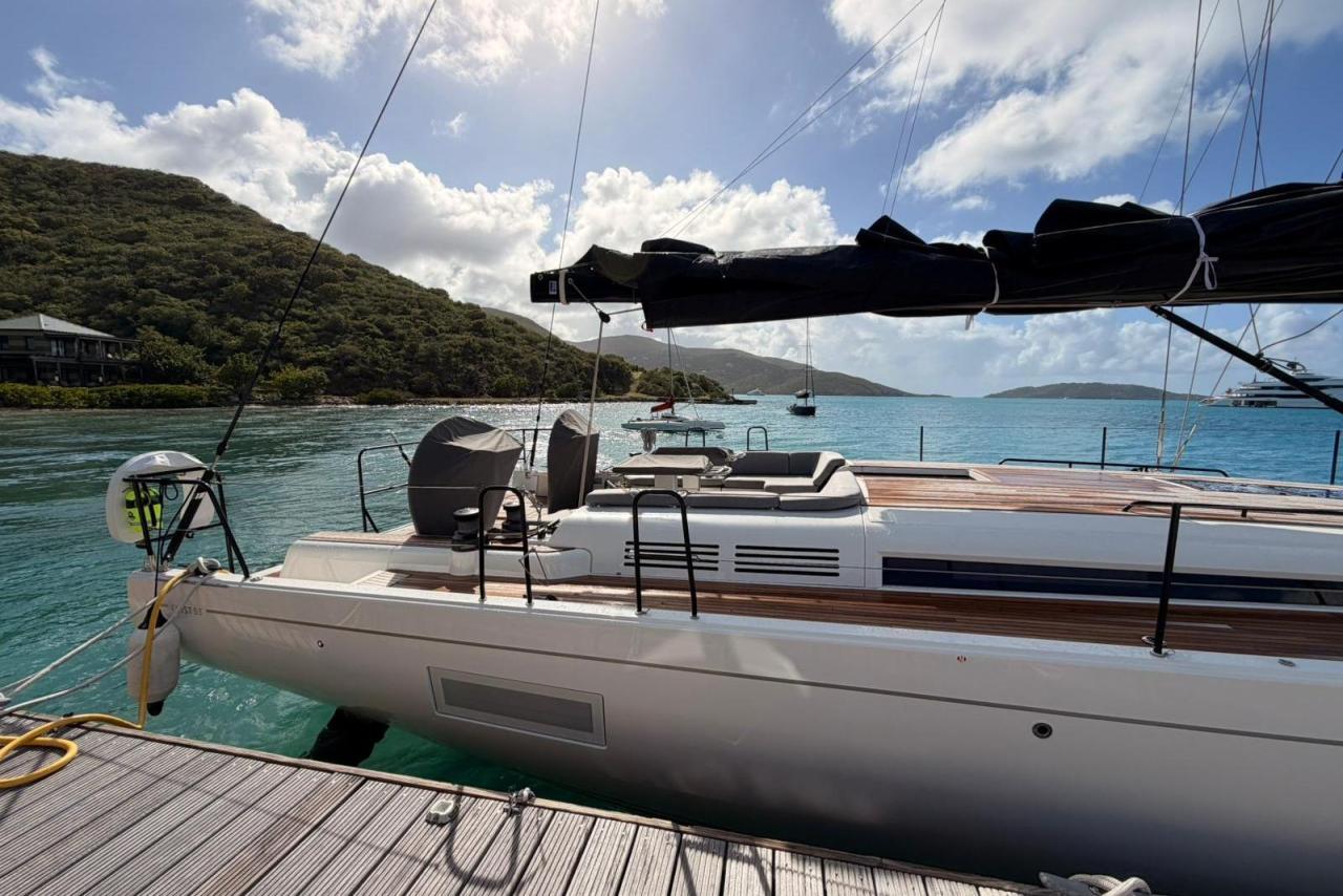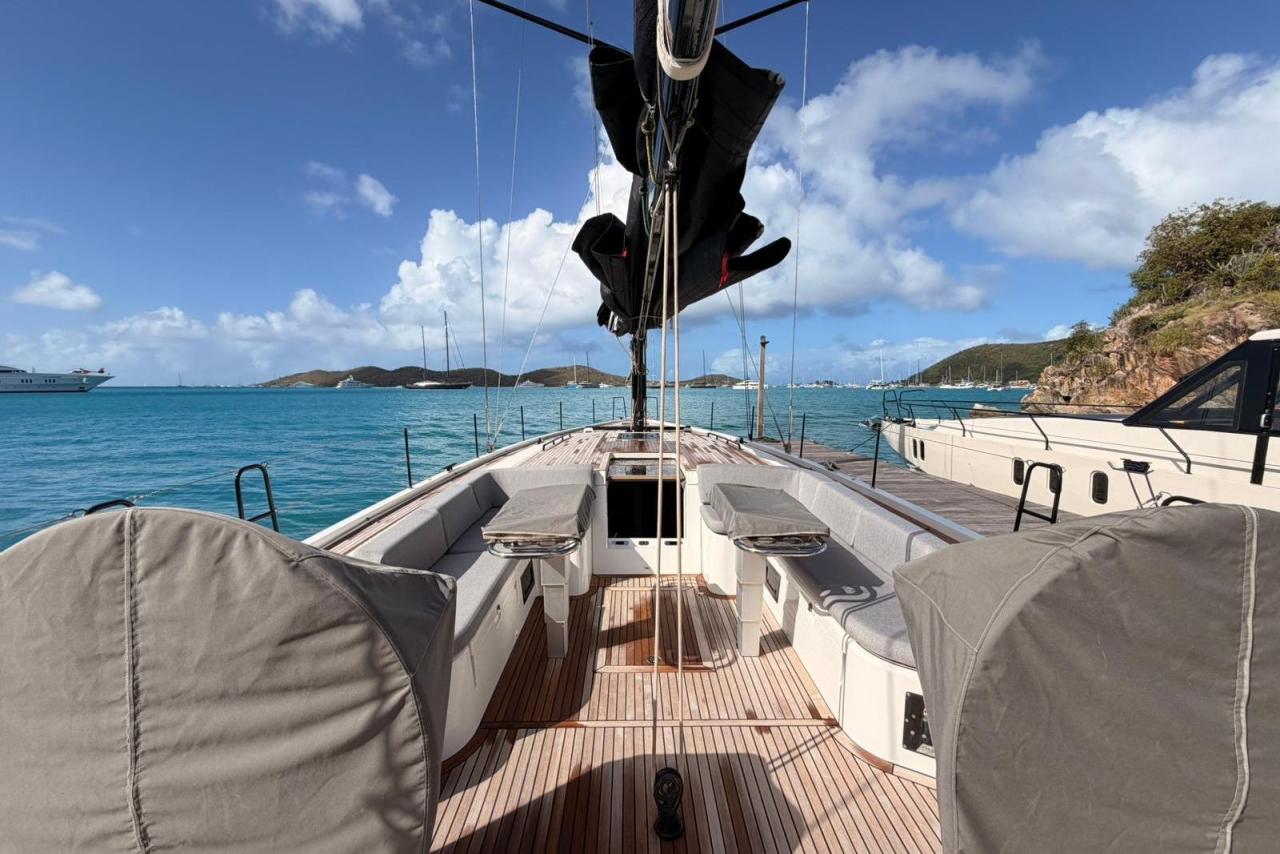 Powered by a 110 HP Yanmar diesel, equipped with retractable stern thruster, generator, air conditioning, and a full Garmin navigation suite, she is perfectly suited for fast passagemaking as well as relaxed coastal cruising. The Fastnet Pack, self-tacking jib, and downwind sailing package ensure easy handling with a reduced crew, while the North Sails inventory (2024) delivers exceptional performance.